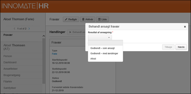 Behandl ansøgt fravær