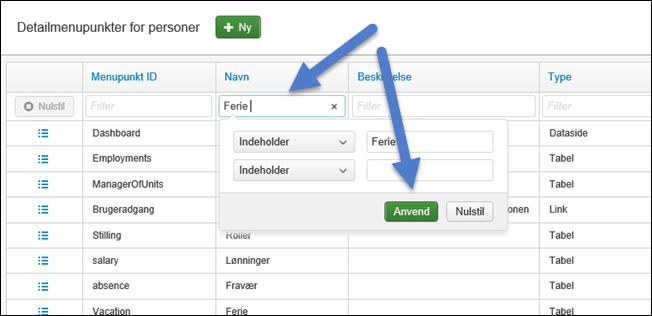 Find det menupunkt, du ønsker at deaktivere. Brug evt. som her, filtret!