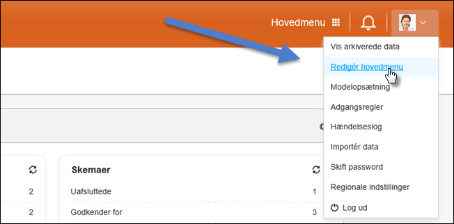 Fra din personlige menu i øverste højre hjørne, vælger du Redigér hovedmenu.