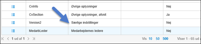 Ud fra de valg af kolonner vi har foretaget, er der mulighed for fastlægge, hvilke data vi vil have vist.