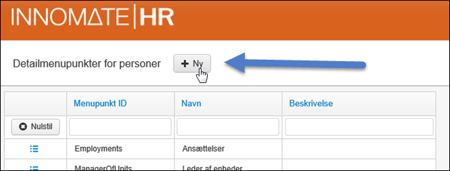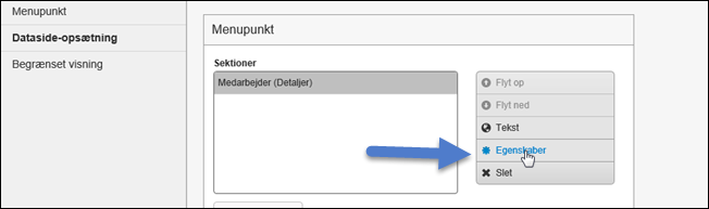 Bemærk: Datasider kan (kun) opsættes i detailmenuer - ikke i hovedmenuen.