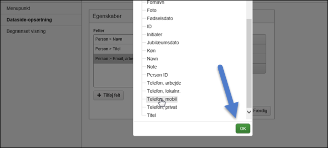 Herfra kan vi nu vælge de ønskede datafelter ind.