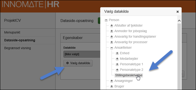 Der kan være flere muligheder for at vælge en stillingsbeskrivelse ved valg af datakilde: