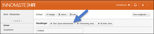 Når handlingen udføres, oprettes den ny enhed med leder, ansættelser og med reference til den enhed, som handlingen er udført fra. Opret evt. flere underenheder til samme enhed. Fortsæt/gentag på samme måde ved at åbne den ny underenhed og tilføje eventuelle underenheder til den.