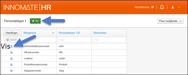 - Vælg personaletype 1 - ud fra liste over personaletyper.
