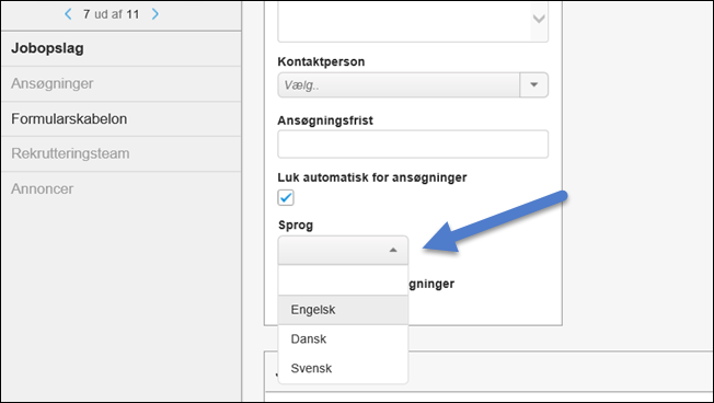 Vælg sprog på jobopslag