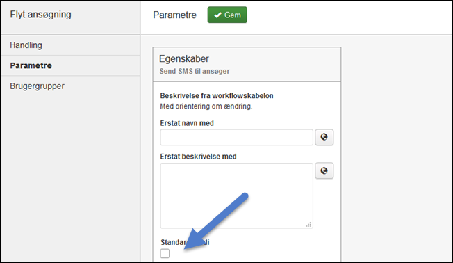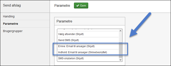 For at anvende SMS, skal det aktivt vælges i parameteren 'Send SMS til ansøger'.