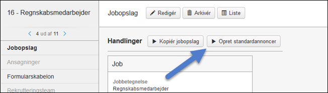 - Send annonce til medie Denne handling startes fra en oprettet annonce på et jobopslag, og kan således anvendes sammen med Opret standardannoncer.